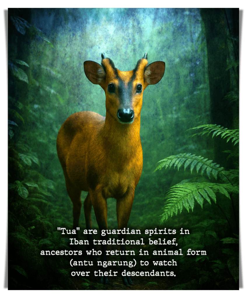 In my family, our guardian is the kijang, the Bornean yellow muntjac. When I was four or five, my late grandparents reminded us repeatedly never to harm, kill, or eat kijang. They did not offer long explanations, but the message was clear. Someone in our line was once a brave person, and that ancestor is believed to return as the kijang to watch over us.