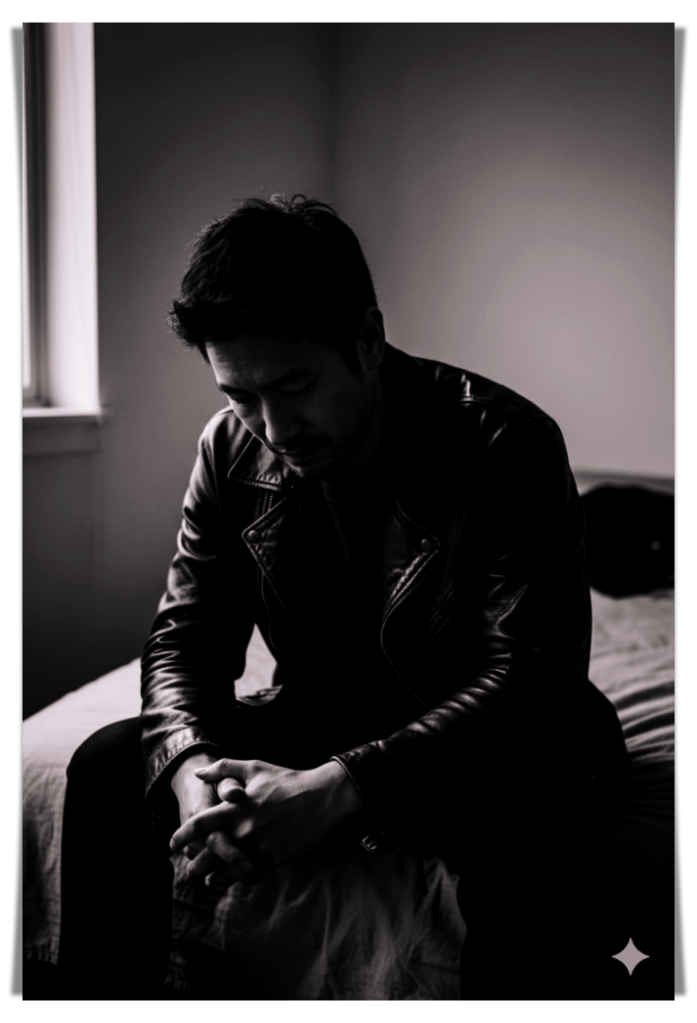 He comes in late, and the door closes quietly behind him. He doesn’t turn on the main lights; instead, he lets the dusk hang softly between us. His shoulders are hunched under the old leather jacket, and I know right away that something heavy followed him home. I can tell by the way he takes off his boots and the silence he carries with him.