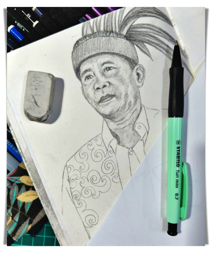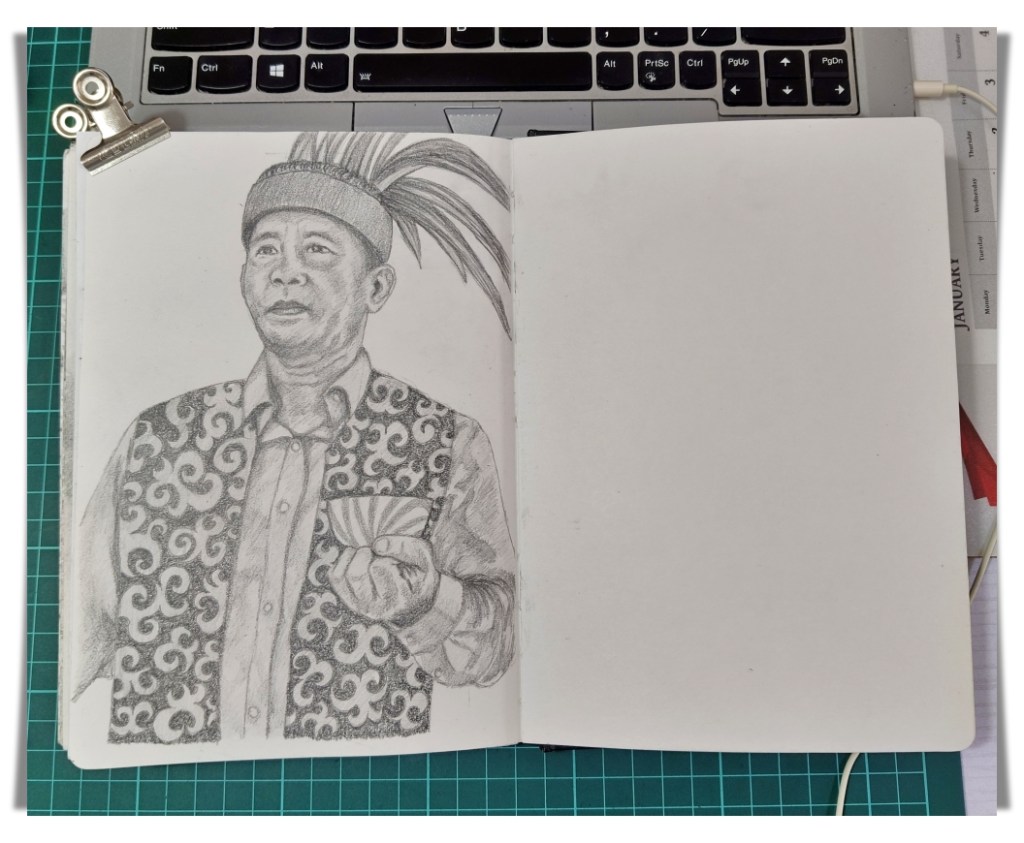 I drew this while working on a zine about Iban headhunting and its cultural origins. As I moved from one page to the next, I realized the zine was also about those who passed the knowledge forward. One of those figures was the group of people known as the lemambang. I wanted to place him (who represents this group) among the pages to acknowledge their big contribution as the guardian of Iban culture and heritage.