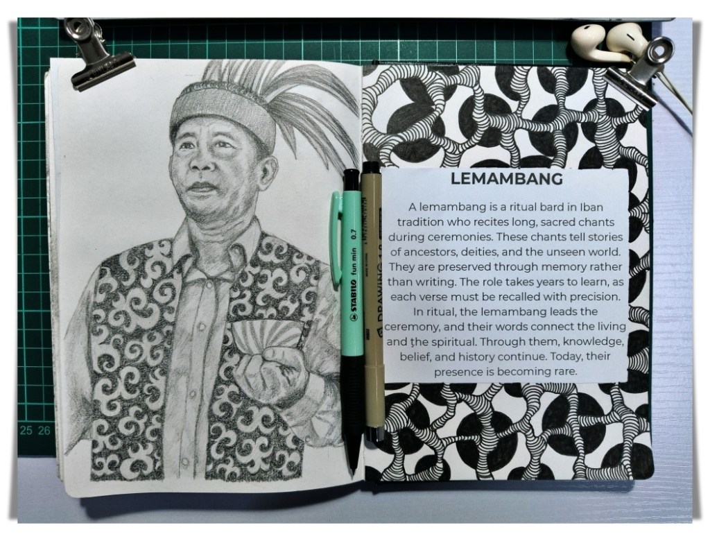 The Iban lemambang is a ritual bard who recites long, sacred chants or invocations at ceremonies or rituals. These chants are the stories of ancestors, deities, and the unseen realm. They are preserved through memory and passed down from one generation to the next.