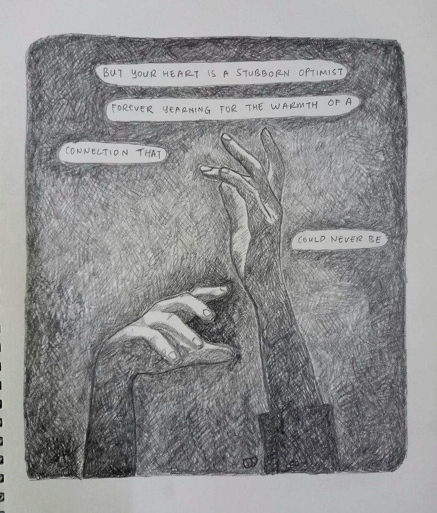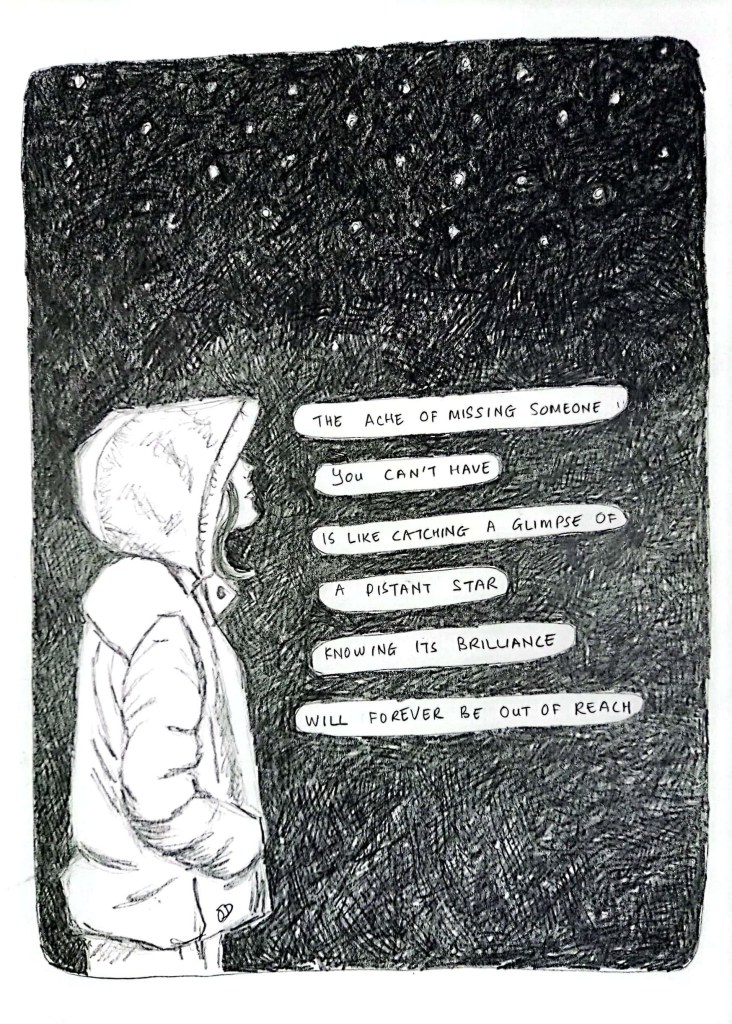This is one of the series of poetry art I sketched throughout the years. This series of four drawings is titled Unattainable. There is no need for background story because this series is deeply personal. I let the words speak for themselves. All rights reserved.
