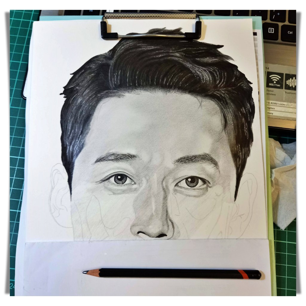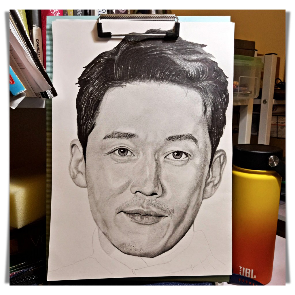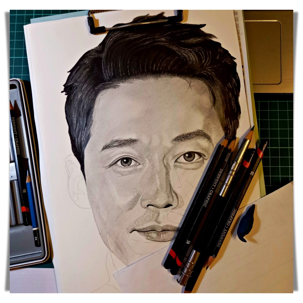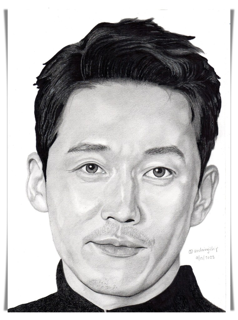 This is a portrait of the South Korean actor Jang Hyuk. Of course I’m a big fan. The reference photograph for this portrait was taken during the Gangneung (English title: Tomb of the River / Paid In Blood) press junket in 2021.