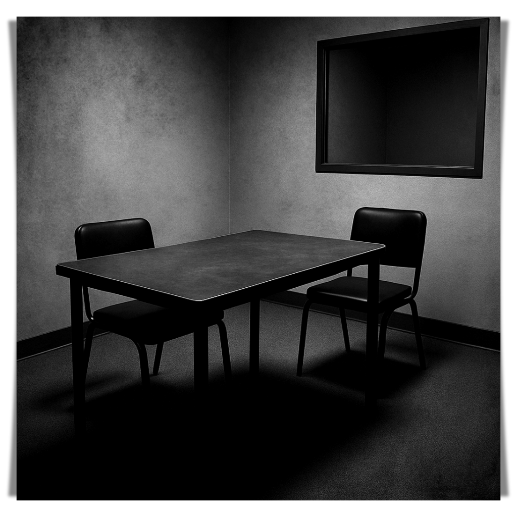 I can see it clearly, even though I’ve never been inside. The walls are bare and dull gray with faint finger prints on the paint from palms dragged in terror, boredom, or defiance. A single table in the center with uneven legs. One chair on each side but only one feels in charge.