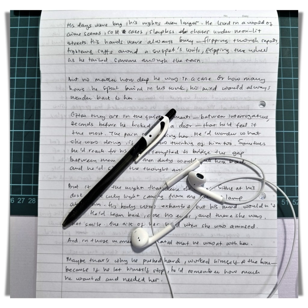 All of this, I’ve only imagined. The desk. The scene. The interrogation. The victims. The walk. They’re a part of his life that I will never touch. He doesn’t talk about it much, at least not directly. A line may slip out from time to time, and that’s it. Most of it comes through in other ways, like when he gets too quiet and his hands stop moving. The tension in his jaw after a long day. The shadows beneath his eyes that no amount of sleep seems to erase.